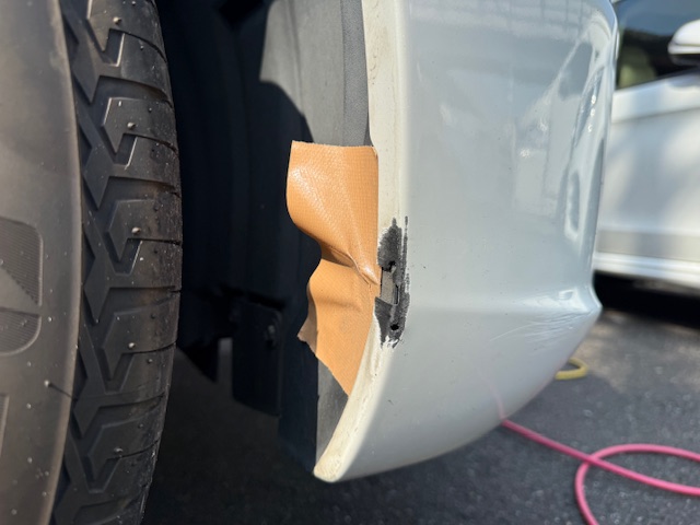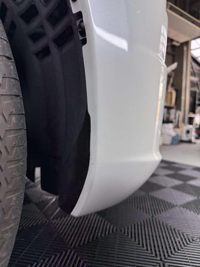 バンパーとサイド部分の板金修理から、仕上げの コーティング再施工 まで一連の作業を行いました。
