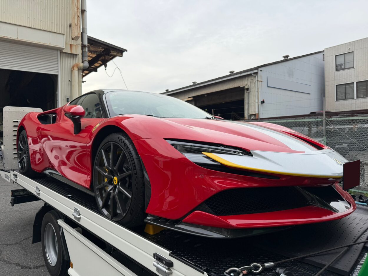 先日、専用積載車にてお預かりしたのは、フェラーリ初の量産PHEVスーパーカー SF90ストラダーレ。