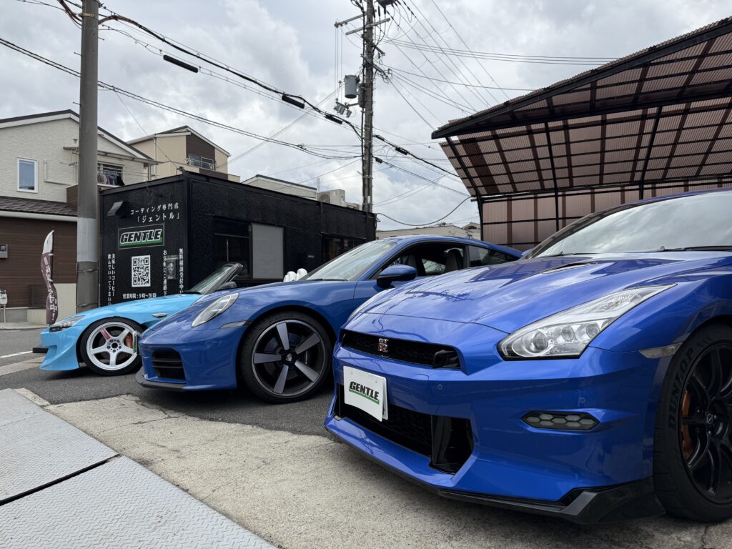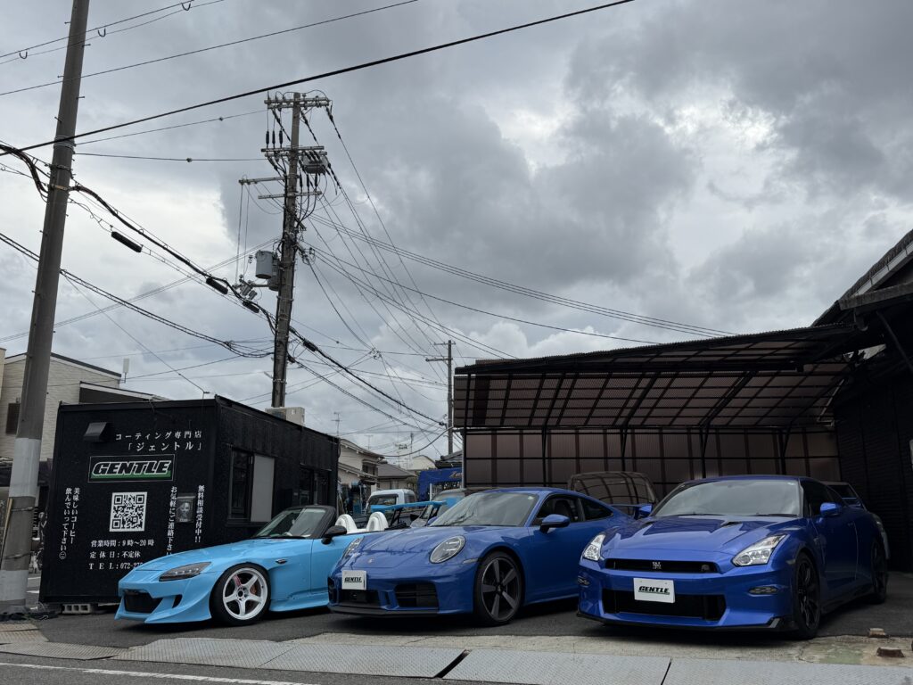 ■ 3台同時施工は圧巻。ブルーの車は“磨きが命”